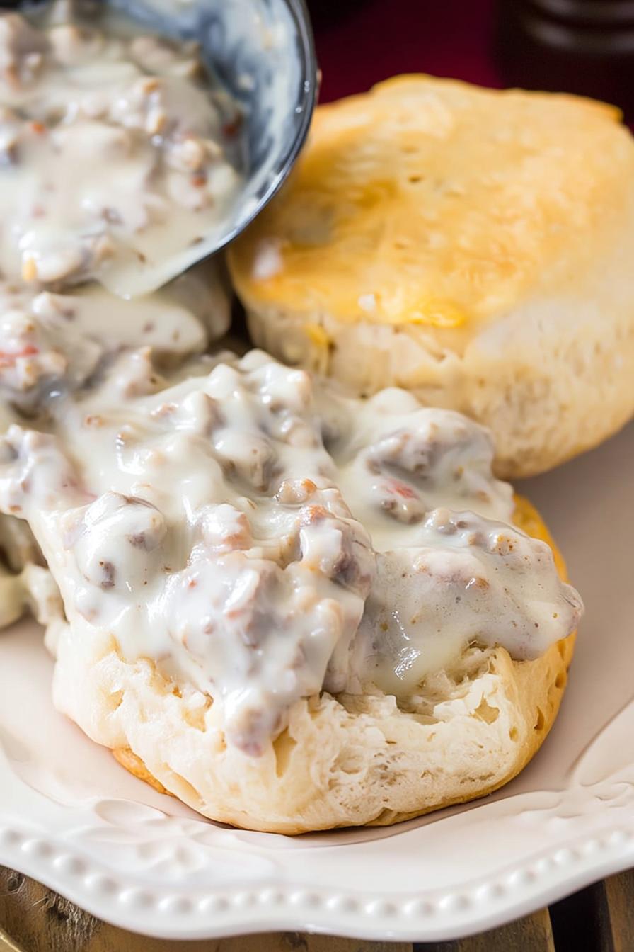 - What can I serve with sausage gravy besides biscuits? Try it over cheese grits, toast points, or baked potatoes for a twist.