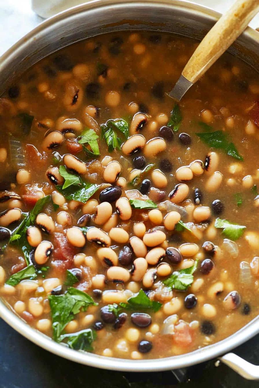 - Can I use canned black-eyed peas instead? Absolutely—drain and rinse two 15-oz cans, then add them in step 7 and reduce simmer time to 15 minutes.