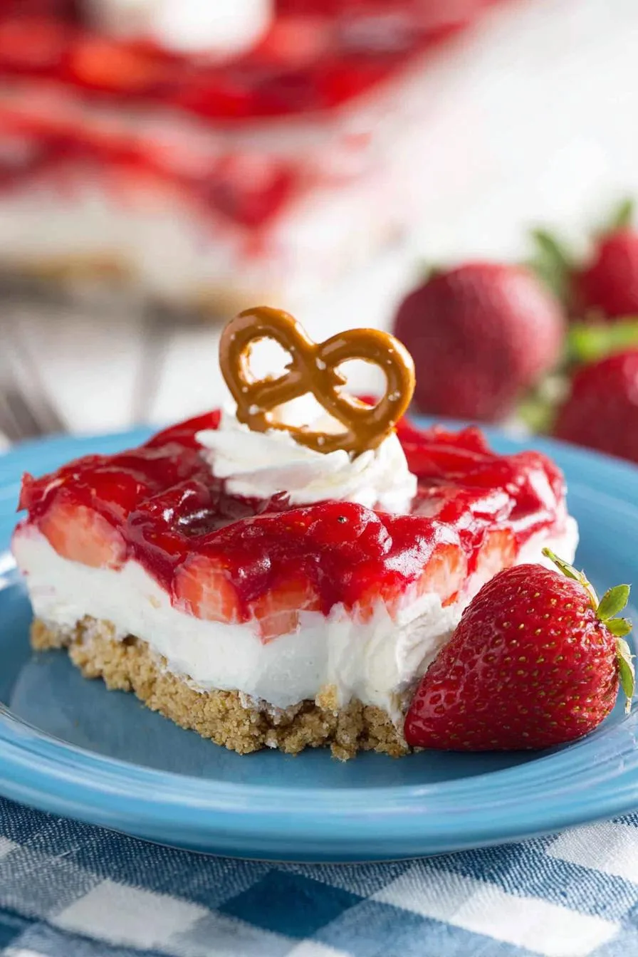 On a rainy spring afternoon, I first tested this layered treat, and the moment I pressed that crust into the pan it smelled of nutty toasted pretzels. Over several runs, I noticed baking at 375°F for exactly 8 minutes yielded a firm edge that didn’t crumble under the cream. That crisp break paired with a bright strawberry top reminds me of picnics growing up—strawberry season and sticky fingers.