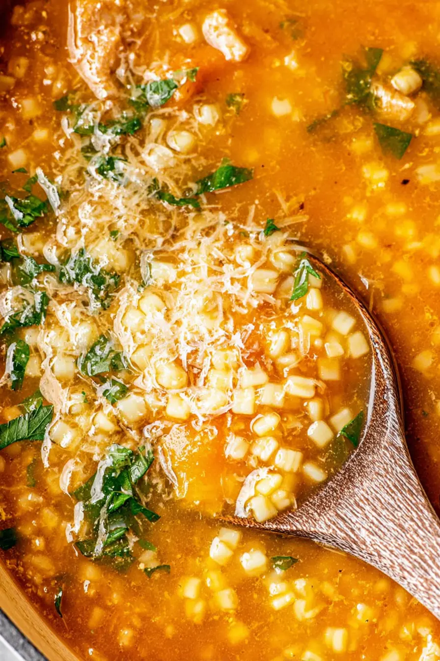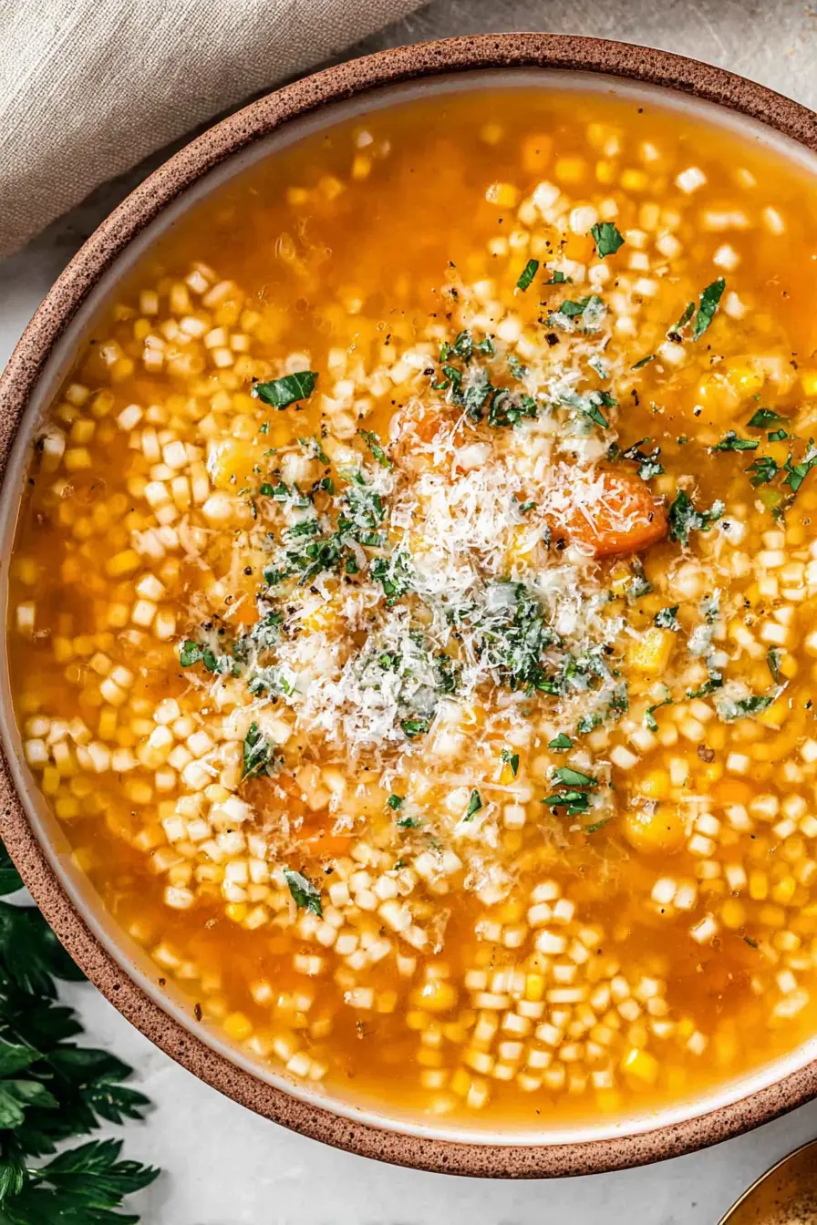 - Pastina: the tiny pasta that creates the comforting base; any small pasta can work.