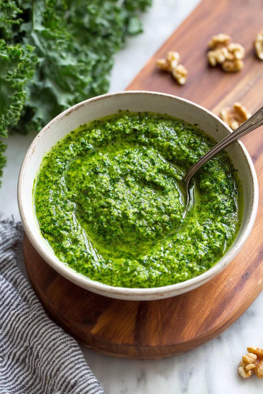 This Kale Pesto is not just a recipe; it’s a way to incorporate more greens into your meals effortlessly. It brings excitement to even the simplest dishes. I enjoy it most mixed with freshly cooked pasta or spread across a warm slice of bread. I’d love to hear how you make yours, so share your results!