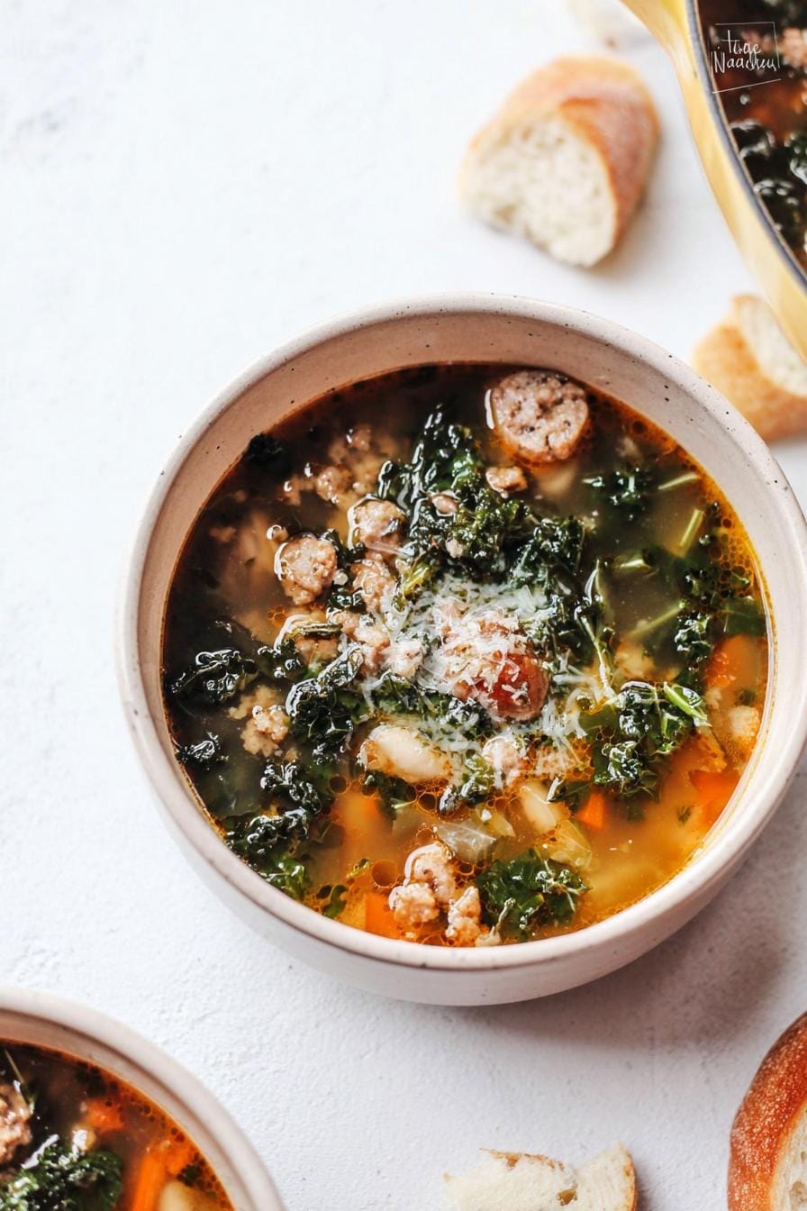 A hearty and flavorful soup combining nutritious kale and savory sausage.