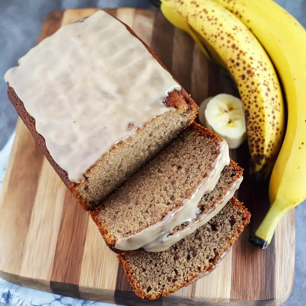 - Spread glaze over fully cooled banana bread and let it set before slicing.