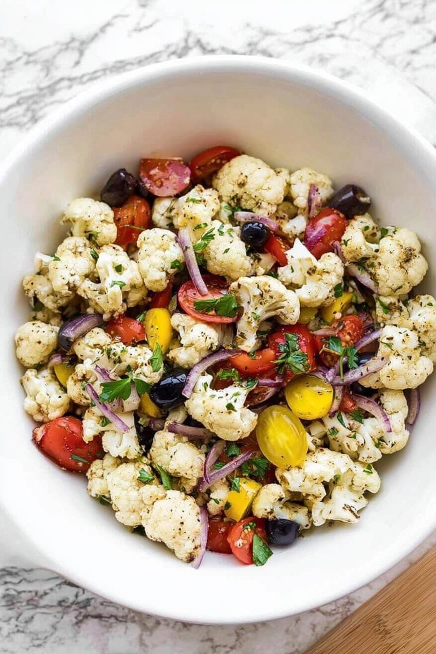 - Greek Salad – a refreshing contrast with the marinated cauliflower flavors