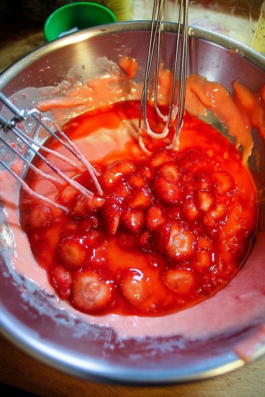 - Gradually fold the strawberry mixture into the dry ingredients, blending just until combined.