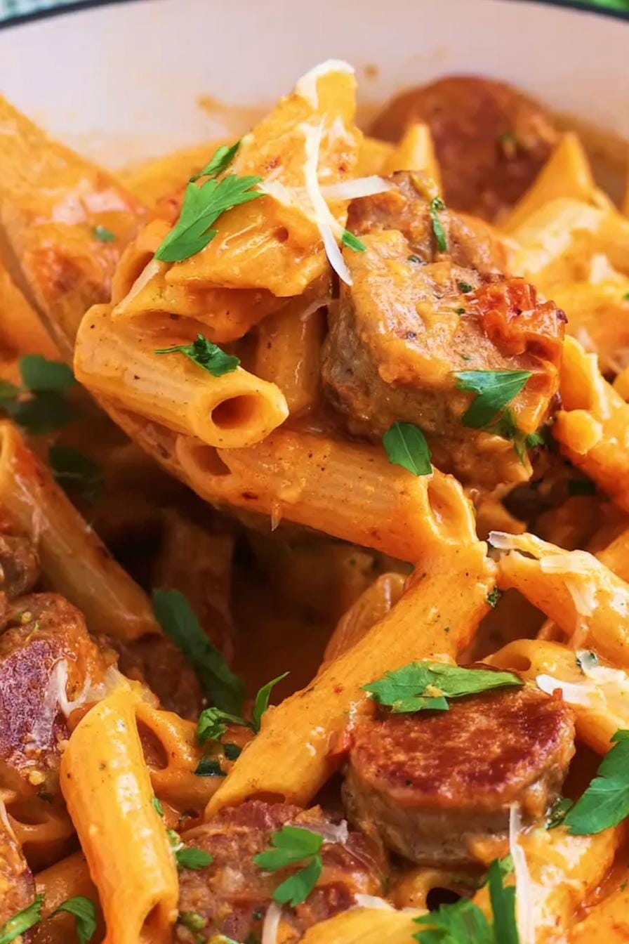 One Pot Creamy Cajun Sausage Pasta