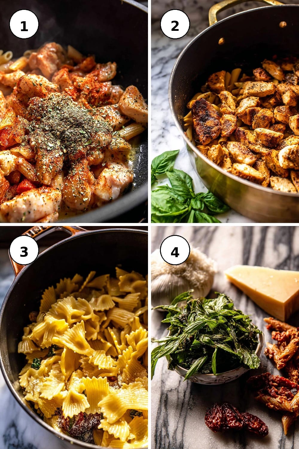 - In a large pot over medium-high heat, sauté the oil from the sun-dried tomatoes with the chicken and 2 teaspoons of Italian seasoning until the chicken is golden and cooked through, about 5 minutes. The aroma of herbs will fill your kitchen.