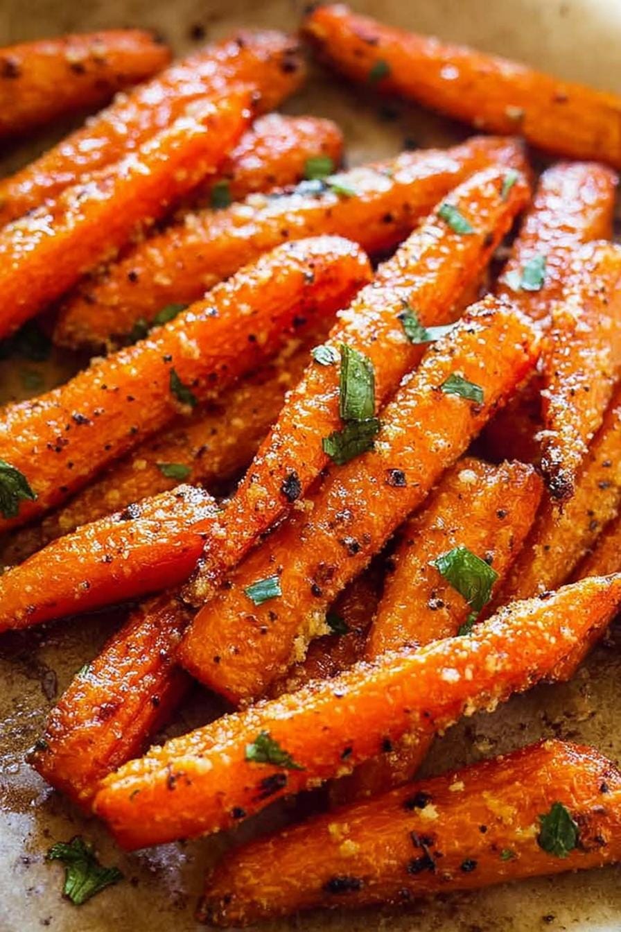 These Parmesan Garlic Roasted Carrots pair wonderfully with grilled chicken or fish. Serve alongside a refreshing Maple Balsamic Brussels Sprouts for an appealing side dish duo. For a heartier meal, complement with creamy mashed potatoes.