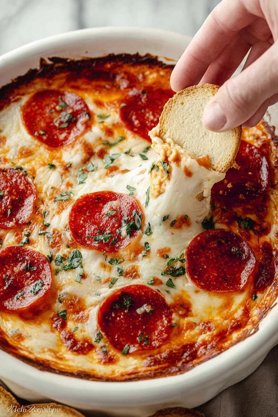 This Pepperoni Pizza Dip is a comforting, crowd-pleasing snack that never fails to impress. Whether it’s a casual get-together or a festive celebration, its cheesy goodness will keep you coming back for more. I love enjoying it with golden-brown toasted bread. Share your experience, and let me know how it turns out!