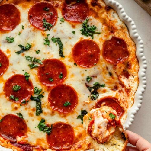 This Pepperoni Pizza Dip can be stored in the fridge for up to 3 days. If you want to freeze it, it lasts about 2 months. Reheat it in the oven at 350°F (175°C) for 15-20 minutes to bring back that creamy consistency; I found it still tastes delightful even after freezing!