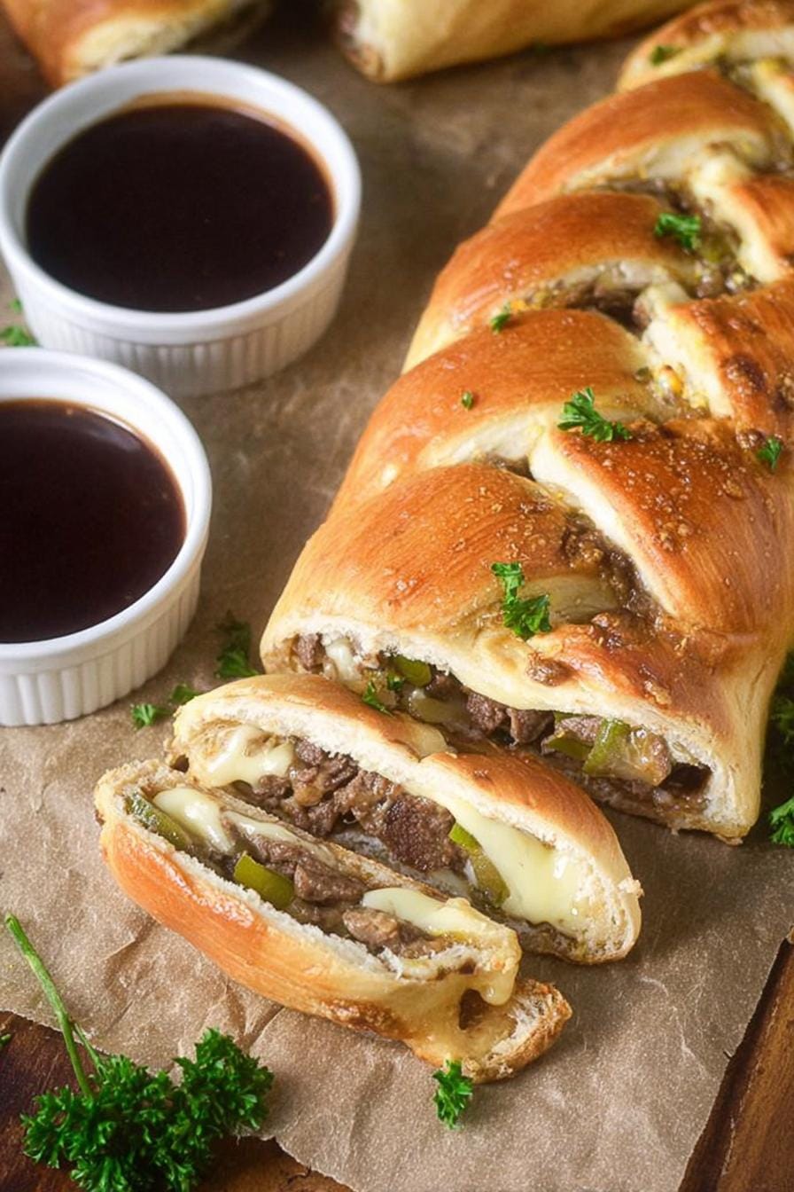 This Philly Cheesesteak Braid is a crowd-pleaser that brings the essence of a traditional cheesesteak into a fun and manageable format. My preferred way to enjoy it is fresh out of the oven, paired with a homemade dip. I invite you to try this recipe and share your experiences with me!