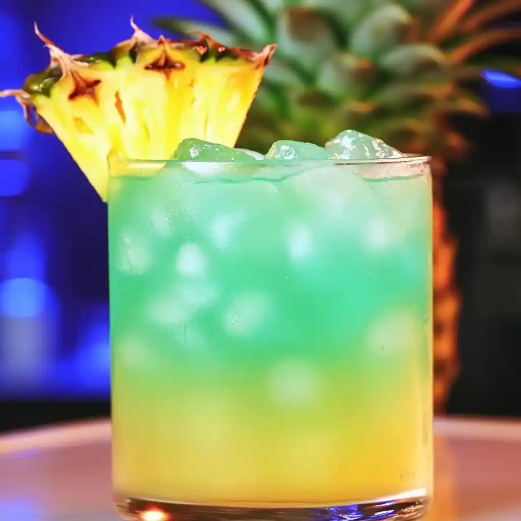 - Blue Curaçao – A vibrant citrus liqueur that turns the drink bright green when mixed.