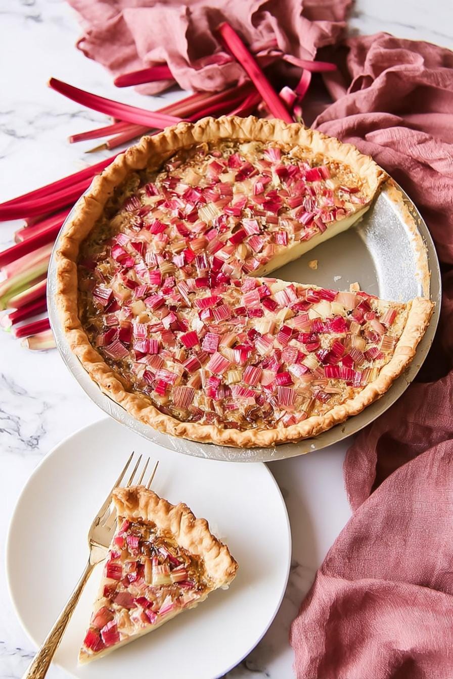 Pair your Rhubarb Custard Pie with a dollop of whipped cream for added richness. It also works well alongside a fresh fruit salad or warm vanilla ice cream. Consider exploring my Greek Lemon Chicken Soup as a light starter!