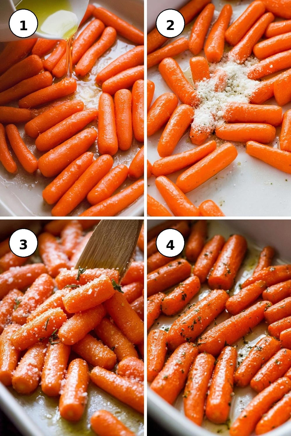 - This recipe easily scales; just keep the ratio of carrots to olive oil and seasoning consistent.