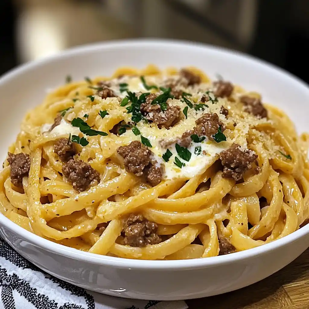 Looking for the ultimate comfort food that’s rich, creamy, and incredibly satisfying? This Savory Beef and Garlic Butter Linguine in Parmesan Cream is everything you want in a weeknight dinner—simple, flavorful, and utterly indulgent. Imagine tender linguine coated in a silky Parmesan cream sauce, packed with juicy ground beef, and finished with garlic butter and fresh herbs. This dish takes inspiration from classic Italian-American cuisine, blending creamy textures with hearty beef in a way that’s taken TikTok and Pinterest by storm.