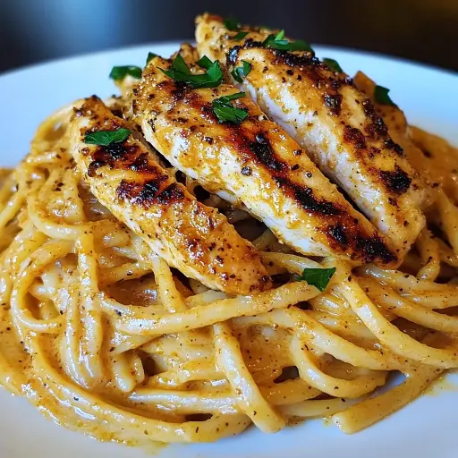 - Assemble the Dish – Place the cooked chicken on top of the creamy pasta and garnish with fresh parsley and extra Parmesan cheese. Serve immediately.