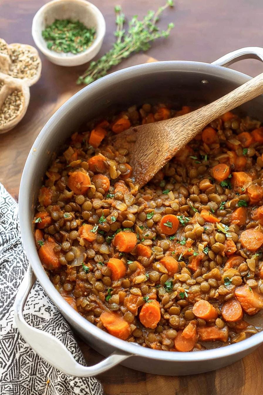 - Carrots: Add natural sweetness and vibrant color, plus they cook perfectly alongside the lentils.