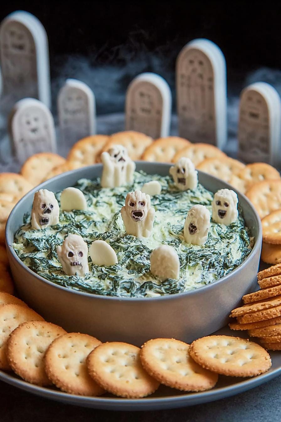 Crafting this Spinach dip graveyard scene has become a highlight of my October get-togethers. I love arranging the tombstone crackers at odd angles to give that playful, spooky vibe. Dive in with your favorite dippers and share your hauntingly good results—I can’t wait to see how your graveyard comes to life!