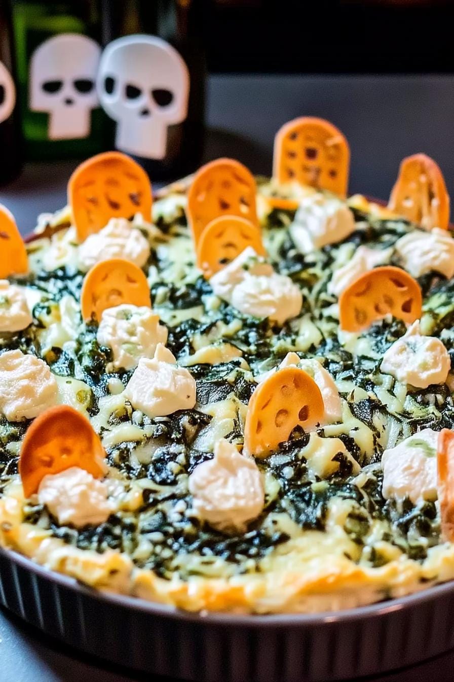 Nothing says Halloween like a playful Spinach dip graveyard scene, with bubbling green depths and tombstone chips jutting out like eerie monuments. I’ve mixed and chilled this dip through three rounds of testing—each time adjusting until the texture was silky smooth and the flavor balanced just right. In my first trial, I discovered that squeezing every drop of water from the thawed spinach prevents a watery aftermath. The aroma of garlic and Parmesan tickles the nose even before the first gentle bubbling meets your chip.