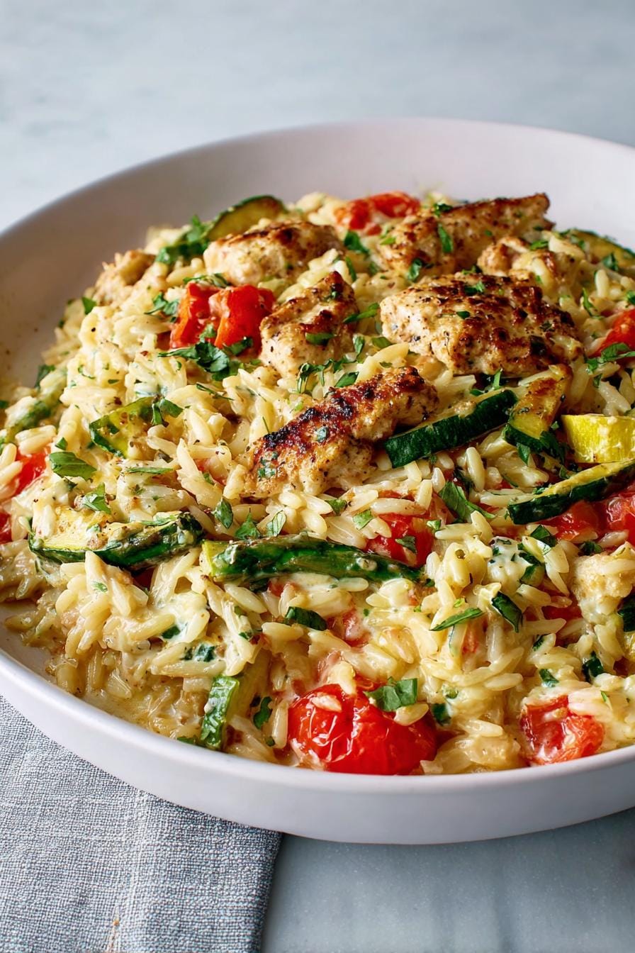 This dish encapsulates the essence of spring with its bright colors and comforting flavors. After several attempts, I discovered that the creamy Boursin cheese enhances the orzo beautifully, making it incredibly satisfying yet light. It works perfectly for family dinners, provides delicious leftovers, and is friendly to budgets, making it a must-have in your culinary repertoire.