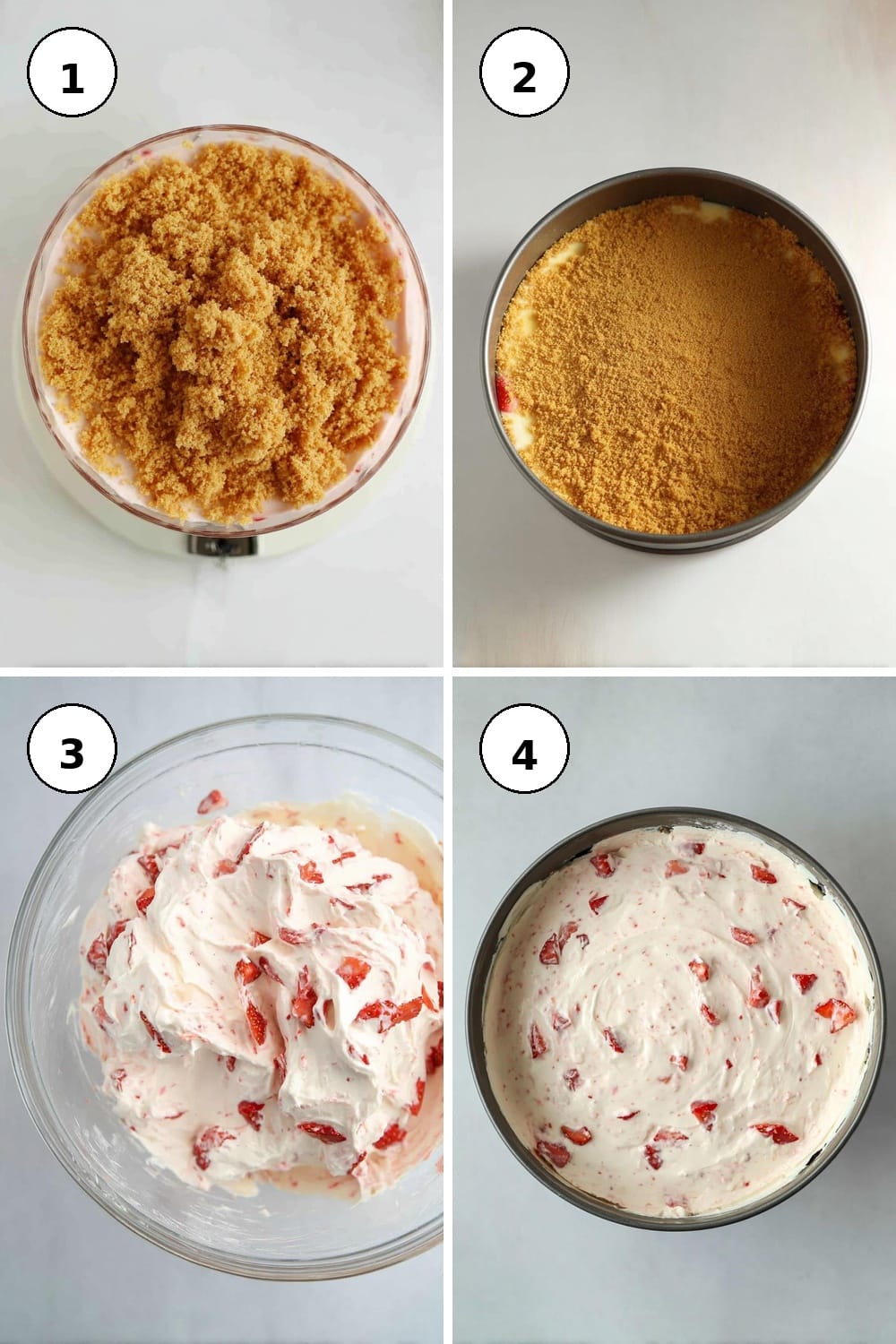 - Gently fold in the chopped strawberries, ensuring they are well incorporated without deflating your mixture. Spread the cheesecake mixture over the chilled crust, smoothing the top, before returning it to the fridge to set for at least 4 hours; overnight is ideal for the best results.