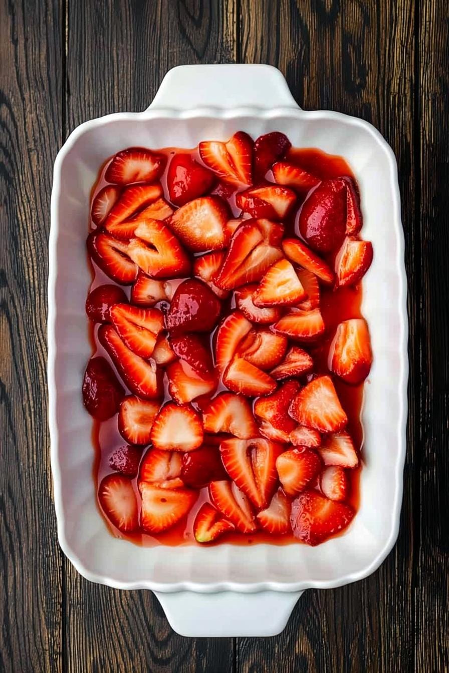 - In a large bowl, combine sliced strawberries with sugar, letting them sit for about 10 minutes to release their juices.