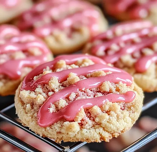 - Visually Stunning – Vibrant pink drizzle and crumb topping for Instagram-worthy cookies.