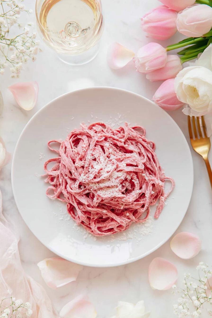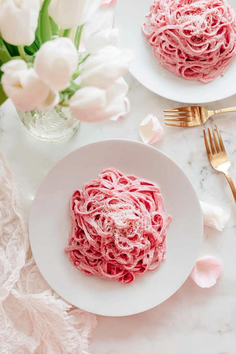 This Valentines Day Vegan Pink Pasta pairs wonderfully with a light mixed greens salad or a slice of garlic bread. For a full meal, consider enjoying some roasted vegetables alongside for a colorful and nutritious balance.