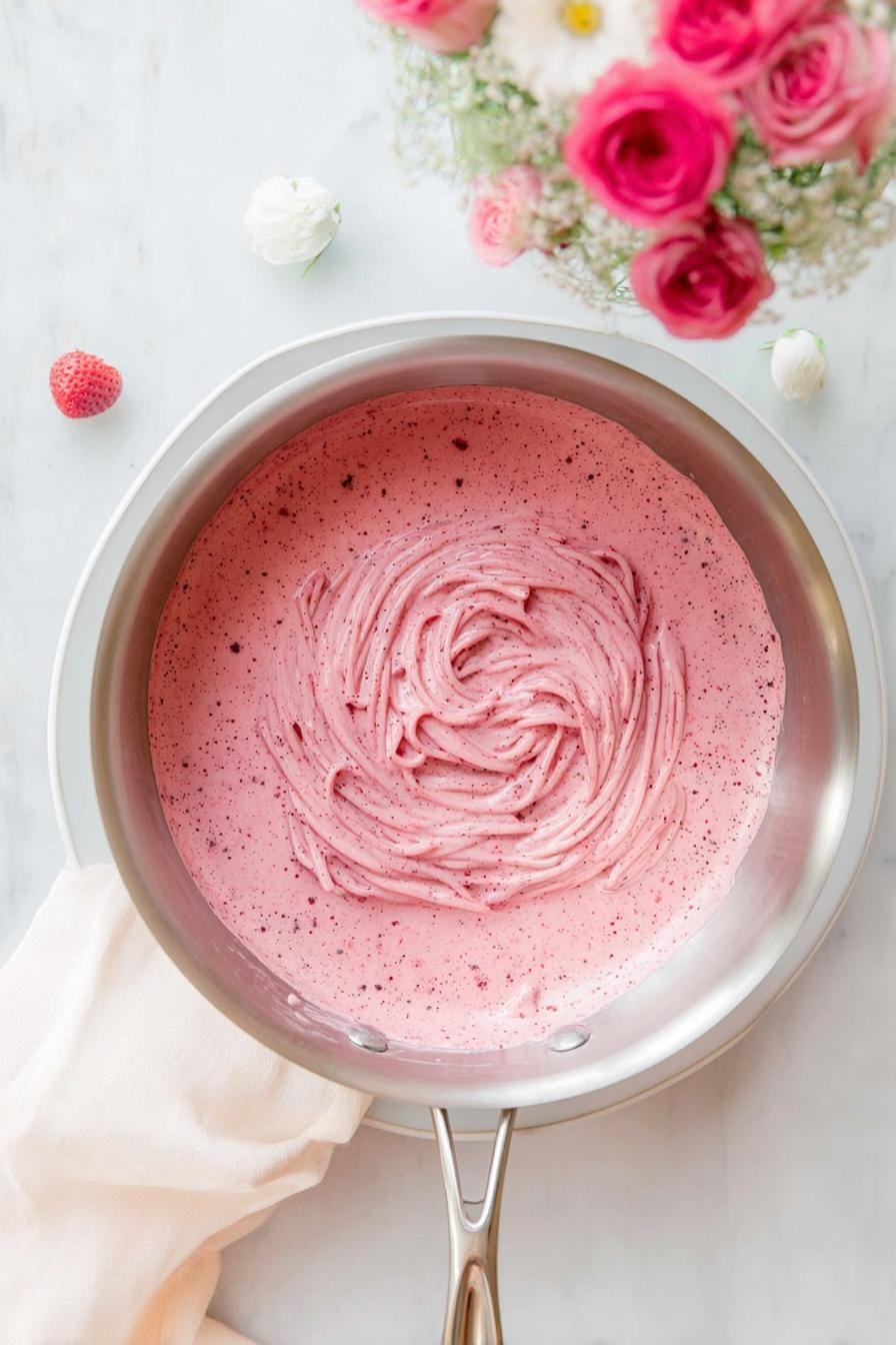 - Cook your favorite pasta according to package instructions. Toss with the pink sauce, adding optional pasta water to reach your desired consistency, and serve hot.