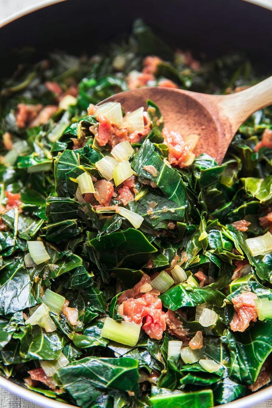 - Can I make this dish ahead of time? Yes, collard greens store well and can be reheated later.