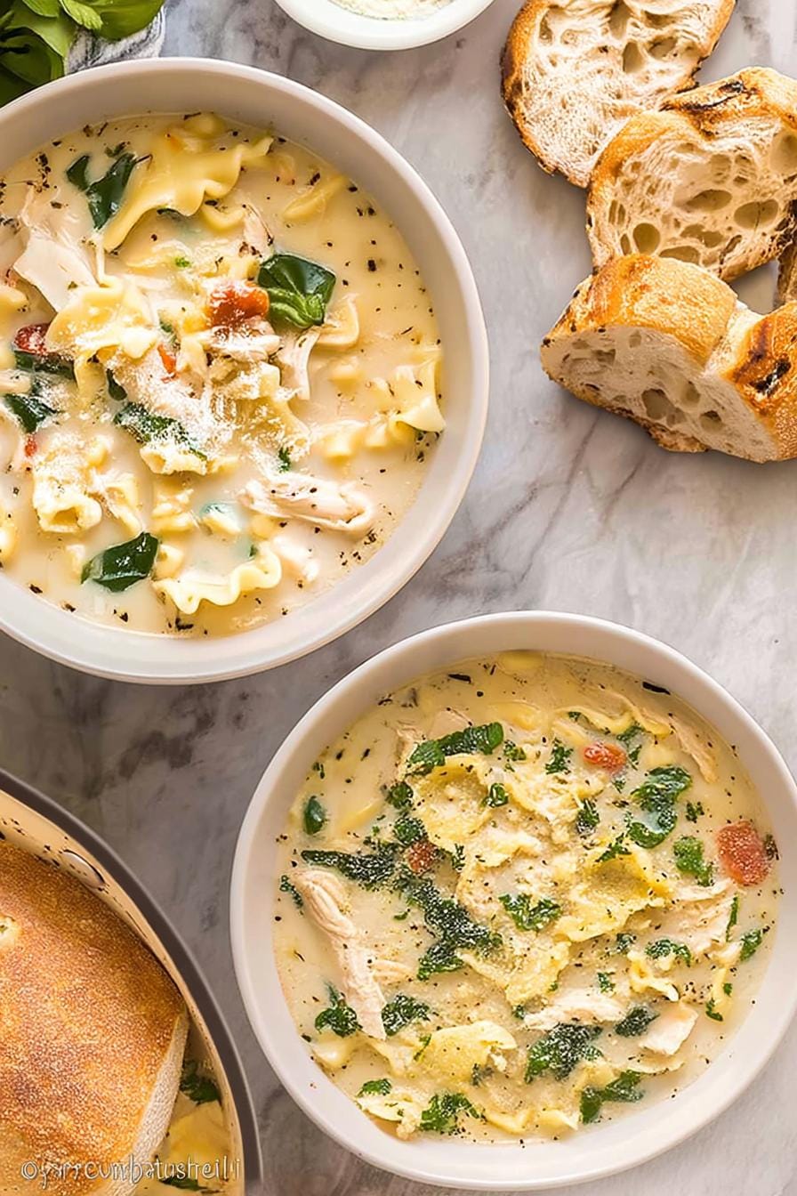 - Creamy Alfredo Lasagna Soup – richer, cheesier broth with Alfredo flair